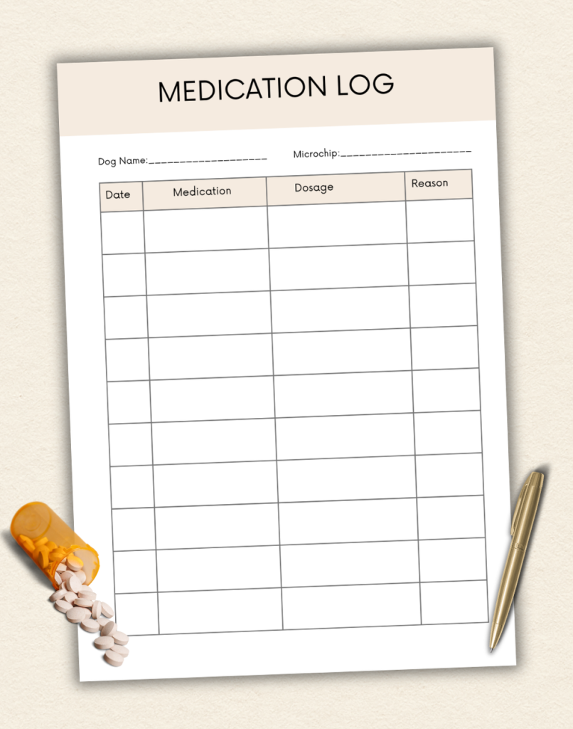 These are blank, evergreen, done-for-you printable checklists, records, and logs. All you need to do is fill in your dog’s own personal information.